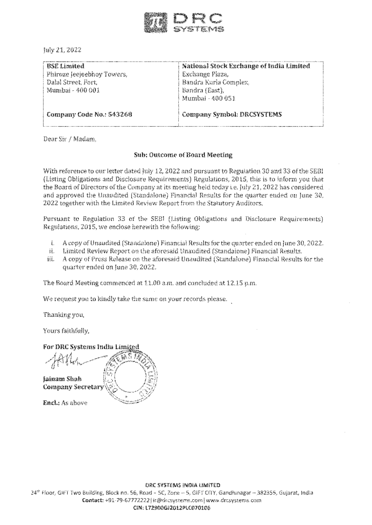 Notice of BM – 21.07.2022